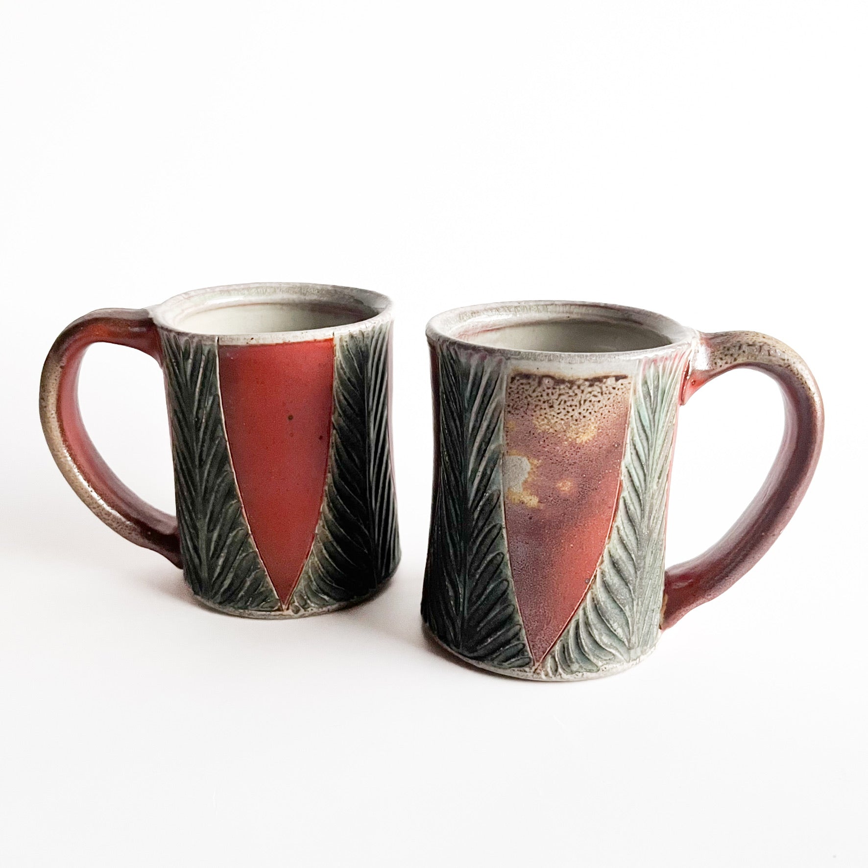 Wheel thrown and carved soda fired stoneware.
